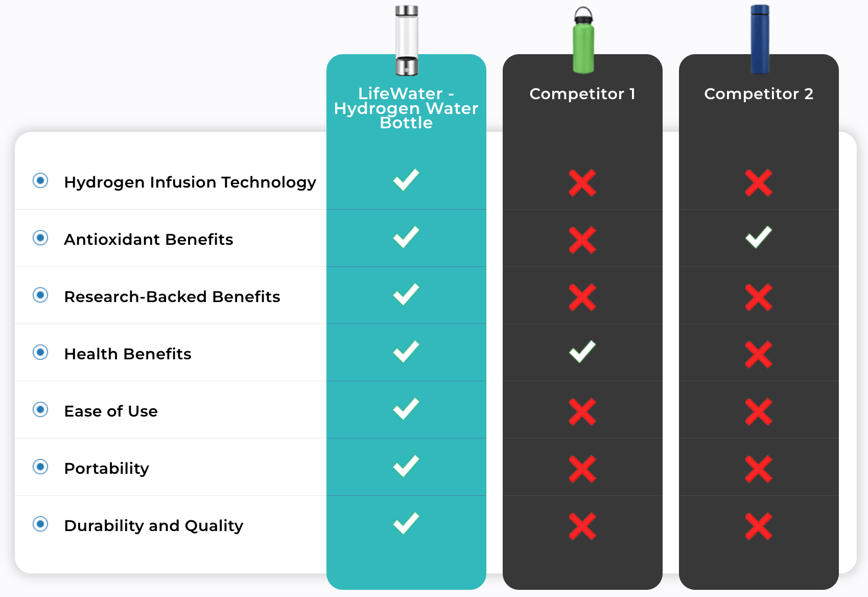 LifeWater Hydrogen Bottle vs Competition